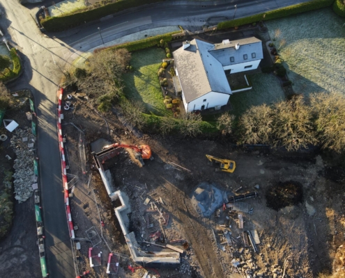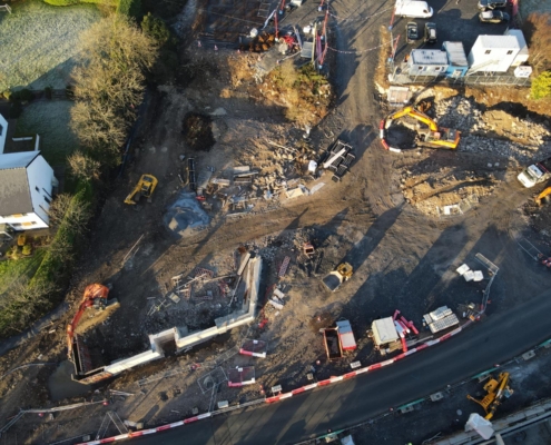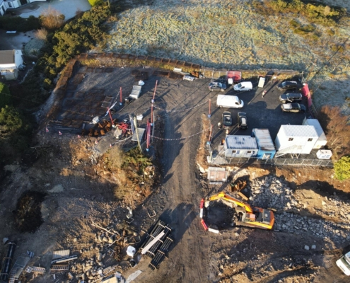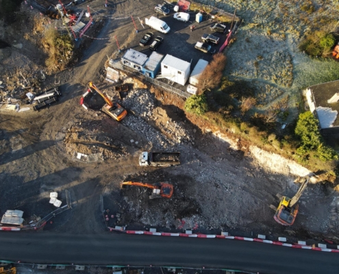 This mixed-use development includes 33no. apartments, retail units, primary health care centre and associated public realm spaces. There is also an under croft sheltered carpark in the basement of the development.