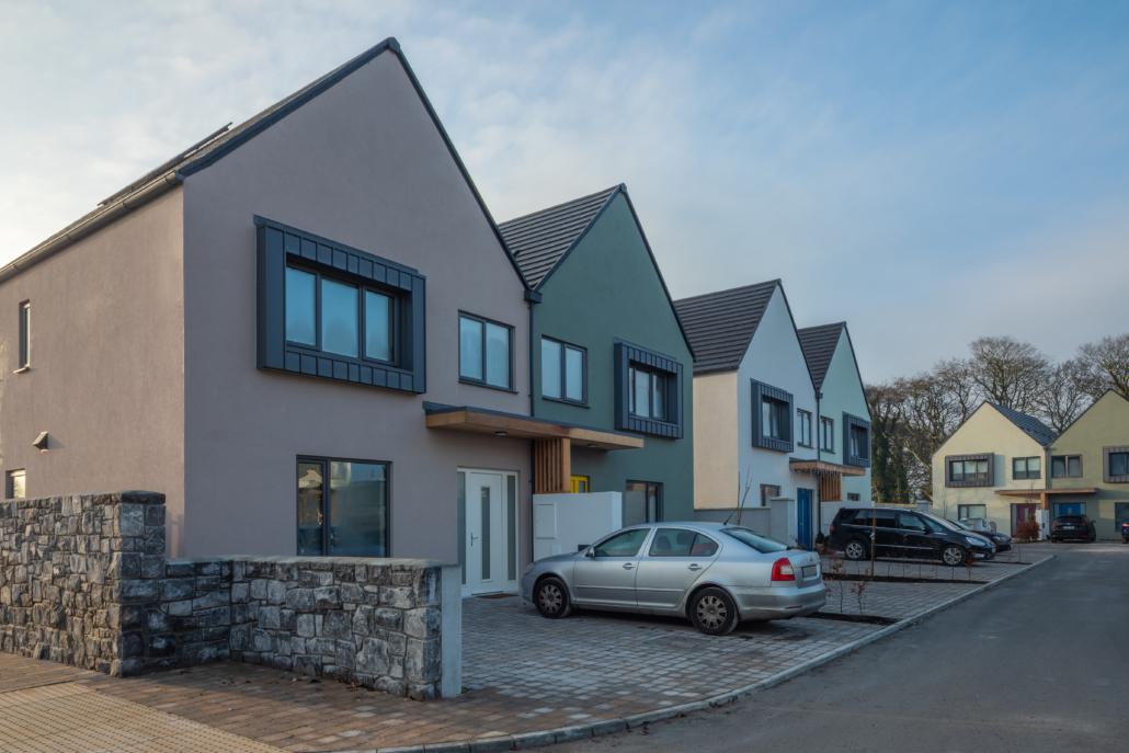 This luxury development of A2 & A1 rated houses is in the sought after and picturesque village of Kinvara. Thornhill comprises 1, 3 and 4 bedroom homes with a mix of styles and sizes using the most innovative construction methods. OCC Construction are proud to lead the design & Construction of Galway’s first passive housing development, one which greatly exceeds all current building and energy regulations. Every property boasts an exceptional internal finish, and all houses exceed Passivehaus standards resulting in the properties being extremely energy efficient having an estimated heating cost of c.€200 per year. This project uses Modern methods of construction including a mix of light gauge steel and insulated concrete forms. The super-efficient structure of these buildings result in them having an extremely low Carbon Footprint with optimal energy efficiency for the future.